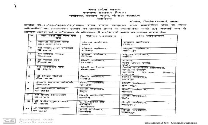 मध्य प्रदेश अधिकारियों के थोकबंद तबादले-मप्र By खबर का असर .कॉम - March 12, 2020 0 Copy URLFlipKakao StoryGettr राजनैतिक उठापटक के बीच लगातार जारी हैं तबादले