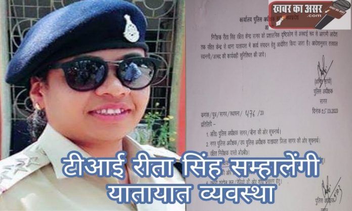 अपनी कार्यकुशलता के चलते हमेशा चर्चाओं में बनी रहने बाली महिला टीआई रीता सिंह जिन्होंने अपराध और उनकी रोकथाम के किये कई उदाहरण पेश किए हैं आप मप्र के सागर जिले में पदस्थ हैं अपने स्वास्थ्य के चलते कुछ दिनों की छुट्टी के बाद अब शहर की यातायात व्यवस्था सम्हालेंगी, कल रात हुआ आदेश आम लोगों में चर्चा हैं अब यातायात व्यवस्था में आएगा ओर सुधार