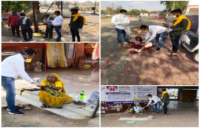 जा सारे भारत मे तेजी से पैर पसार रही वैश्विक महामारी कोरोना वायरस के कारण भारत मे लॉक डाउन के दौरान शासन प्रशासन गरीब वर्ग की भोजन व्यवस्था में जुटा हैं साथ ही इस युध्द में सहयोग के लिए और भी समाजसेवी लोगो के हाथ सामने आ रहें हैं इसी कढ़ी में शहर के कांग्रेस नेता अंकित जैन अपने साथियों भानु राजपूत सौरभ जैन,अम्बर जैन के साथ पूरी सोशल डिस्टेन्स बनाते हुए शहर के दूरदराज ऐसे इलाको में पहुचे जहां शासन सायद न पहुच पाए,ऐसे क्षेत्रों में एक एक व्यक्ति को भोजन के पैकेट वितरित किये साथ ही कोरोना वायरस से बचने समझाई भी दी..