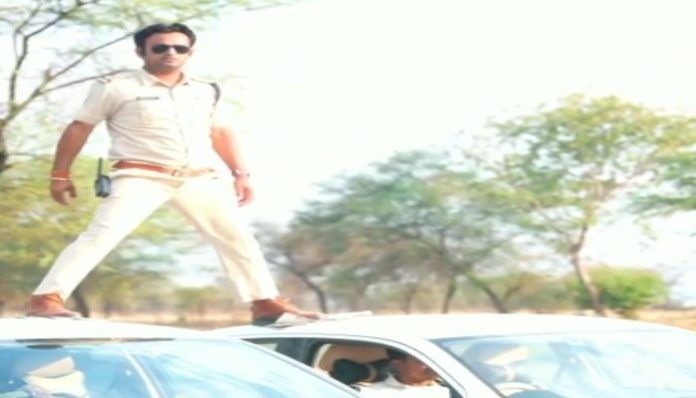 कारों के ऊपर खड़े होकर सिंघम स्टंट कर रहें पुलिसवाले को मिली यह सजा लग गया जुर्माना