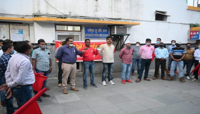 सागर–//आज दिनांक 9,8, 2020 को AIRF और WCRU के आवाहन पर सागर ब्रांच ने निजीकरण के विरोध में प्लेटफार्म नंबर एक पर जोरदार विरोध प्रदर्शन किया इसमें भारी संख्या में रेलवे के कर्मचारी उपस्थित रहे एवं साथियों ने अपने विचार रखे शाखा सचिव कामरेड नवीन तिवारी ने कर्मचारियों को संबोधित करते हुए कहा निजीकरण का असर रेल कर्मचारियों से ज्यादा भारत की जनता पर पड़ेगा और जनता विरोधी बताया कामरेड मनोज पांडे जी ने एनपीएस के दुष्परिणाम बताते हुए कहा कि आज वर्तमान में जो कर्मचारी एनपीएस के तहत रिटायर हो रहे हैं उन्हें पेंशन के रूप में मात्र हजार से 15 सो रुपए ही मिल रहे हैं इतनी महंगाई में लोगों को घर चलाना संभव नहीं है सागर शाखा अध्यक्ष कामरेड अनिल यादव ने कहा कि वर्तमान समय में वर्तमान समय में आंदोलन रेल आंदोलन को जन आंदोलन बनाने की आवश्यकता है एवं सोशल मीडिया के माध्यम से लोगों को समझाना होगा कि निजी करण के क्या दुष्परिणाम है मंडल उपाध्यक्ष कामरेड महेंद्र कुर्मी ने सभा को संबोधित करते हुए कहा कि वर्तमान समय में रेलवे काफी नाजुक दौर से गुजर रही है इस समय सभी रेल कर्मचारियों को संगठित होकर एकता का परिचय देना होगा हमारे कामरेड राजेश पटेल ने विरोध प्रदर्शन में उपस्थित सभी कर्मचारियों का आभार व्यक्त किया सभा में उपस्थित कामरेड प्रमोद कौराव रामस्वरूप यादव गिरेंद्र सिंह लोधी अमित सेन जीवन पटेल अरविंद यादव भीम सिंह मनोज पटेल मनोज प्रजापति उमेश यादव साहब सिंह बुंदेला एस के मिश्रा आदि बड़ी संख्या में रेल कर्मचारी उपस्थित थे
