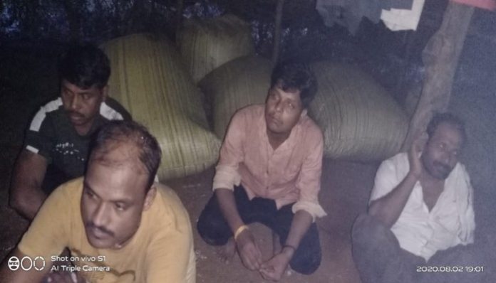 सागर//थाना देवरी अंतर्गत काली पहाड़ी भटार डोंगर सलैया स्थित जंगल में जुआ खेलते हुए आरोपी कमलेश्वर कम्मू कोरी ,आशीष ताम्रकार, विपिन सेन, योगेश उर्फ बंटू ,प्रदुमन ताम्रकार एवं राम मिश्रा को कल देर रात दिनांक 2/8/ 20 20 को गिरफ्तार किया गया है आरोपियों के पास से 52 ताश पत्ते नगदी 5460 तथा घटनास्थल से 4 मोटरसाइकिले एवं 6 मोबाइल कुल मशरूका कीमती ₹1,10,460 का जप्त किया गया है आरोपियों के विरुद्ध धारा छे 13 जुआ एक्ट के तहत अपराध पंजीबद्ध किया गया है उपरोक्त कार्यवाही एसडीओपी महोदय देवरी तथा थाना प्रभारी देवरी के निर्देशन में उप निरीक्षक धर्मेंद्र यादव द्वारा आरक्षक राजेंद्र रावत आरक्षक राजीव तोमर आरक्षक वीरेंद्र ठाकुर आरक्षक नर्सिंग आरक्षक अरविंद के साथ मौके पर दबिश देकर कार्यवाही की गई है