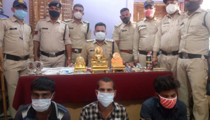 श्रीमान पुलिस अधीक्षक महोदय सागर के निर्देशन में थाना राहतगढ में टीम गठित की जाकर सघन गस्त की जा रही है जो गस्त के दौरान दिनॉक 06-07.04.21 की दरम्यानी रात उक्त टीम के अधिकारियो/कर्मचारियो को जरिये मुखबिर सूचना प्राप्त हुई कि राहतगढ विदिशा रोड पर बीना नदी पर बने बड़े पुल के नीचे 5 लोग करीब 1-2 घंटे से बैठे है उन लोगो के पास एक काले रंग की पल्सर मोटरसाईकिल एंव एक बेग है वे लोग किसी एटीएम की लुटने की बात कर रहे है जो उक्ट टीम द्वारा उक्त स्थान पर रेड कार्यवाही की गई जो आरोपी 1. तुलसी अहिरवार पिता प्रेमनारायण अहिरवार उम 35 साल निवासी वार्ड 15 राहतगढ, 2. राजेन्द्र पिता पप्पू कुशवाहा(पटेल) उम 20 साल निवासी उरदौना रोड बरोदिया नौनागिर थाना खुरई देहात 3. रीतेश पिता पुरषोत्तम कोरी उम 26 साल निवासी काकागंज वार्ड थाना मोतीनगर जिला सागर टीम दवारा घेराबंदी कर पकडे गये एवं उनके दो साथी रिज्जू उर्फ रिजवान