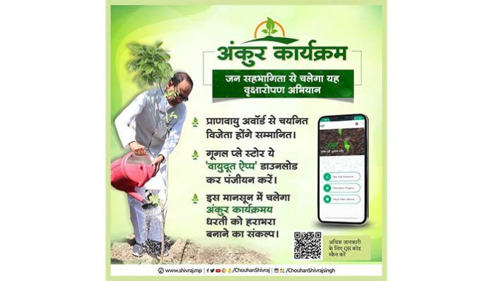 माननीय मुख्यमंत्री शिवराज सिंह चौहान “अंकुर कार्यक्रम” में भागीदार जिलेवार विजेता प्रतिभागियों को प्राणवायु अवार्ड एवं प्रमाण पत्र से करेंगे सम्मानित
