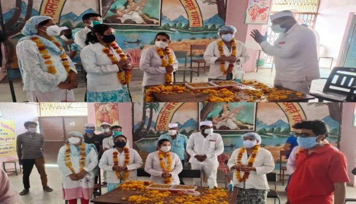 वैक्सीनेशन सेंटर पर नर्सों का सम्मान किया कांग्रेस सेवादल ने