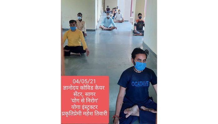 ज्ञानोदय कोविड केयर सेंटर में आयुष विभाग की ओर से काढ़ा एव योग कराया जा रहा है