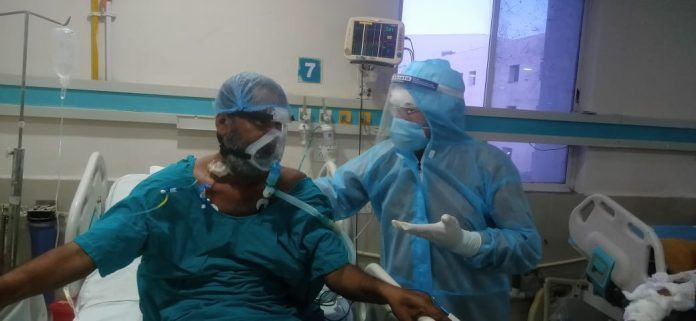 विधायक शैलेंद्र पहुंचे चिरायू की कोविड आईसीयू , पीपीई किट में युवा नेता की काउंसलिंग की