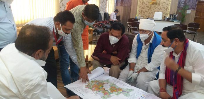 सागर। लोक निर्माण मंत्री माननीय गोपाल भार्गव एवं विधायक शैलेंद्र जैन ने सागर के प्रस्तावित बाईपास को लेकर पीडब्ल्यूडी के अधिकारियों से की चर्चा।