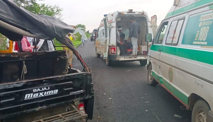 अज्ञात फोर व्हीलर ने मारी सवारियों से भरी चैंपियन को टक्कर, 108 ने पहुचाया अस्पताल