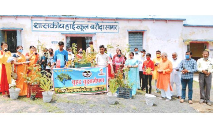 अखिल विश्व गायत्री परिवार सागर के प्रमुख प्रबंध ट्रस्टी डॉ0 अनिल तिवारी जी ने बताया कि अखिल विश्व गायत्री परिवार सागर के वृक्ष गंगा अभियान के अंतर्गत दिनाँक 09 जुलाई 2021 को शा0 हाई स्कूल बरोदा सागर एवं शा0 मि0 स्कूल बरोदा सागर में 125 फलदार व छायादार वृक्षों जैसे आम, अमरूद, आंवला, नींबू, जामुन, पीपल, बरगद, नीम, अशोक, कदम्ब, आदि का पौधा रोपण गायत्री परिवार बरोदा की टीम के संयोजक नेतराम कुर्मी जी के नेतृत्व में टीम के सदस्यों, विनोद, शुभम, संगीता, रक्षा, कीर्ति, व सागर से महिला मण्डल की संयोजिका श्रीमती रेखा गुप्ता, श्रीमती जानकी साहू जी के विशेष सहयोग से किया गया। गायत्री परिवार बरोदा की टीम ने इस वर्ष 151 पौधारोपण करने का संकल्प भी लिया।