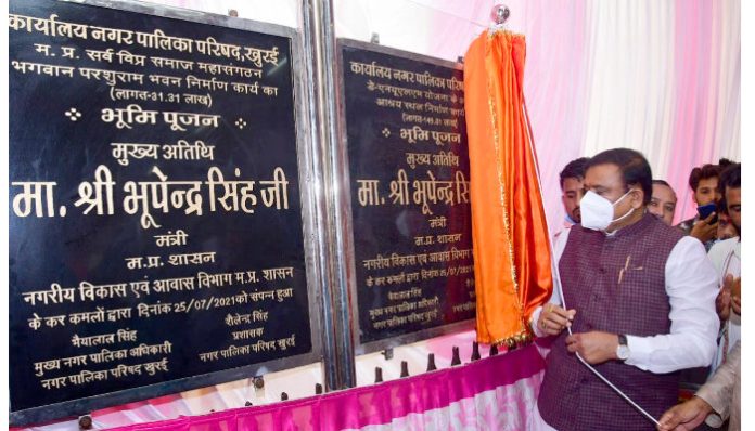 25 जुलाई 2021/प्रदेष के नगरीय विकास एवं आवास मंत्री भूपेन्द्र सिंह ने खुरई में 1.81 करोड़ रूपए लागत के आश्रय स्थल और सर्व ब्राह्मण समाज के सामुदायिक भवन निर्माण का भूमिपूजन किया। उन्होंने सामुदायिक भवन निर्माण हेतु प्रथम किश्त में 21 लाख रूपए देने की घोषणा की। इस अवसर पर 106 गरीब परिवारों को आवास हेतु पट्टे वितरित किए।