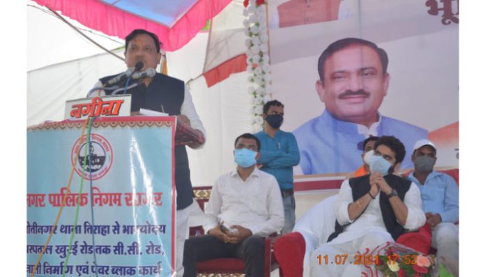 नगर निगम द्वारा मोतीनगर चैराहा से भूतेश्वर मंदिर होते हुये भाग्योदय अस्पताल खुरई रोड़ तक बनने वाली सड़क निर्माण कार्य का प्रभारी मंत्री, नगरीय विकास मंत्री एवं नगर विधायक ने भूमिपूजन किया