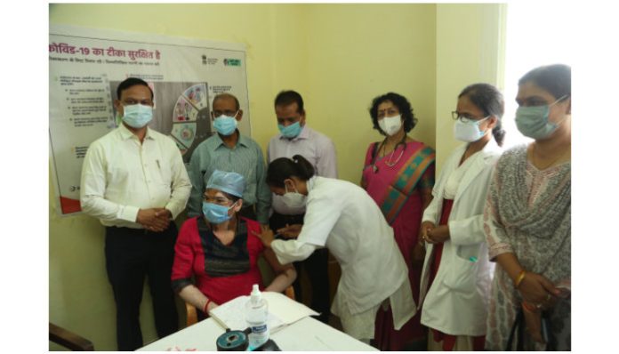 गर्भवती माताओं का कोविड वैक्सीनेशन का शुभारंभ कलेक्टर द्वारा जिला दिव्यांग एवं पुर्नवास केन्द्र जिला चिकित्सालय में किया गया