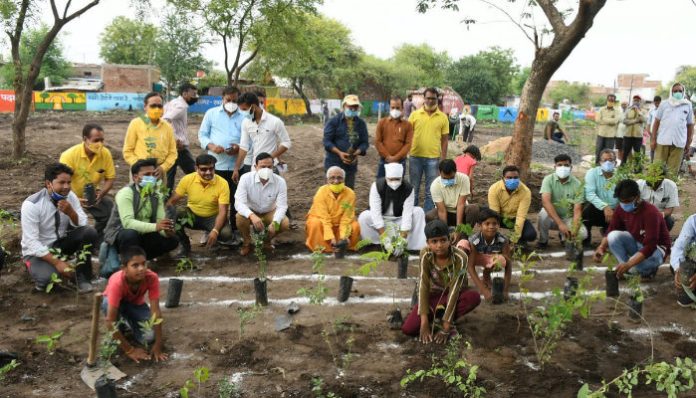 कोविड वॉरियर के सम्मान में अंकुर अभियान के तहत मुक्तिधाम में हुआ बृहद पौधारोपण