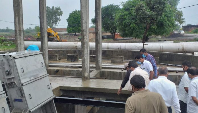 निगमायुक्त ने सीवर प्रोजेक्ट के अंतर्गत बनाये जा रहे एस.टी.पी.प्लांट का सहित पम्पिंग स्टेशनों का निरीक्षण किया