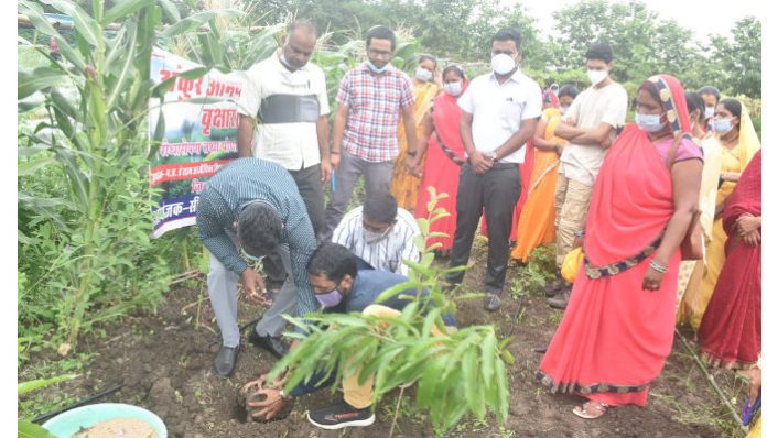 डॉ. इच्छित गढ़पाले मुख्य कार्यपालन अधिकारी जिला पंचायत ने आज सिरोंजा में ग्राम सिरोंजा, बाबुपुरा, चितौरा, की 40 से अधिक आजीविका महिला समूहों से जुड़ी महिलाओें के साथ थाई अमरूद के साथ साथ ग्राफ्टेट प्रजापति के आम प्लांटेशन हाईडेनसिटी विधि से लगाये जाने हैं के डेमो मॉडल में पौध रोपण कर इस नई विधि की बुनियाद रखी। इस अवसर पर उन्होनें उपस्थिति महिला प्रतिभागियों को सब्जी उत्पादन के साथ साथ टमाटर प्रसंस्करण दाल प्रसंस्करण इकाईयों की स्थापना एनआरईटीपी के अंतर्गत करते हुए स्वयं का व्यवसाय और उत्पादन इकाई स्थापित करने का आहवान किया पशु पालन की गतिविधि से जुड़ी समूह की महिलाअें के पशु शेड निर्माण में तेजी लाने के लिए संबंधितों को दूरभाष पर तत्काल निर्देश जारी किये हैं।