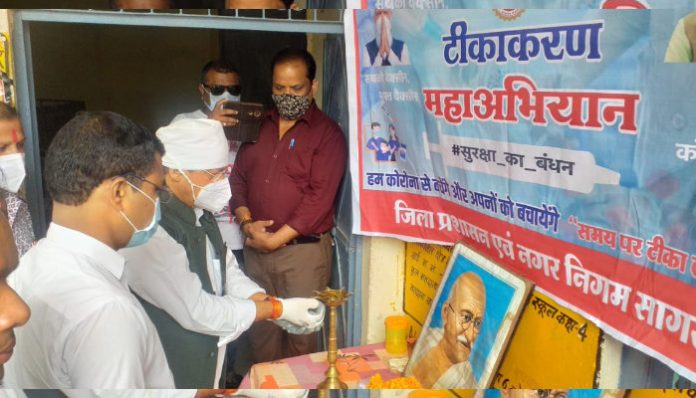 नगर विधायक शैलेन्द्र जैन एवं निगमायुक्त आर.पी.अहिरवार ने निगम उपाायुक्त डा.प्रणय कमल खरे एवं सहायक नोडल अधिकारी बृजेश तिवारी के साथ लक्ष्मीपुरा वार्ड स्थित मोराजी स्कूल पहुचकर गांधी जी चित्र पर माल्र्यापण कर टीकाकरण अभियान की शुरूआत की और प्रथम एवं द्वितीय डोज लगवाने हेतु आये महिला एवं पुरुषो का स्वागत किया और उनसे अपील की कि वैक्सीन लगवाकर अपने आस पड़ोस में जिस व्यक्ति को टीका ना लगा हो उस व्यक्ति को टीका लगवाने हेतु भेजकर इस अभियान में अपना सहयोग प्रदान करें।