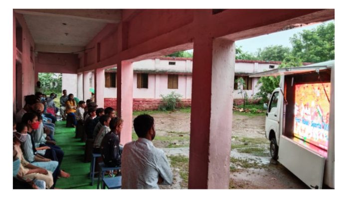 जिले के मालथौन गांव में पहुँचा खेल साक्षरता प्रसार वाहन