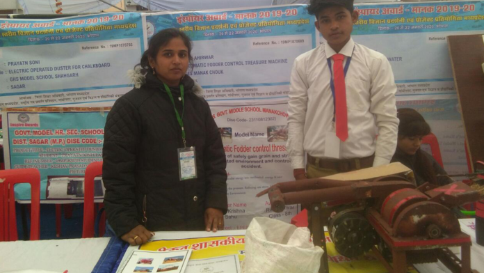 8वीं राष्ट्रीय स्तर की प्रदर्शनी एवं परियोजना इंस्पायर अवार्ड मानक प्रतियोगिता में सागर संभाग से राज्य स्तर पर एकमात्र चयनित मॉडल स्वचालित भूसा नियंत्रण थ्रेशर मशीन के साथ छात्र रिक्की यादव एवं  मार्गदर्शक शिक्षकमति कृष्णा साहू स्कूल  जीएमएस मानकचौक ,जिला और राज्यः सागर, मध्य प्रदेश से राष्ट्रीय स्तर पर दिल्ली से आयोजित वर्चुअल प्रतियोगिता में जुड़कर सागर संभाग एवं मध्य प्रदेश का प्रतिनिधित्व 4 से 8 सितंबर तक करेंगे।