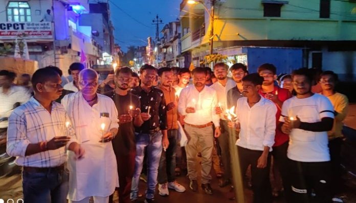 पूनम हत्याकांड को लेकर युवक कांग्रेस ने दूल्हा देव गली से मोतीनगर चौराहे तक निकाला शांति पूर्वक कैडिल मार्च