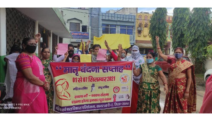 पोषण माह अंतर्गत 1 से 7 सितम्बर तक ‘’मातृ वंदना सप्ताह’’ का आयोजन किया जा रहा है। जिसका उद्देश्य प्रधानमंत्री मातृ वंदना योजना का प्रचार-प्रसार करना एवं हितग्राहियों के पंजीयन हेतु विशेष अभियान चलाकर समस्याओं का समाधान करना एवं छूटे हुए हितग्राहियों को योजना का लाभ प्रदान करना है।