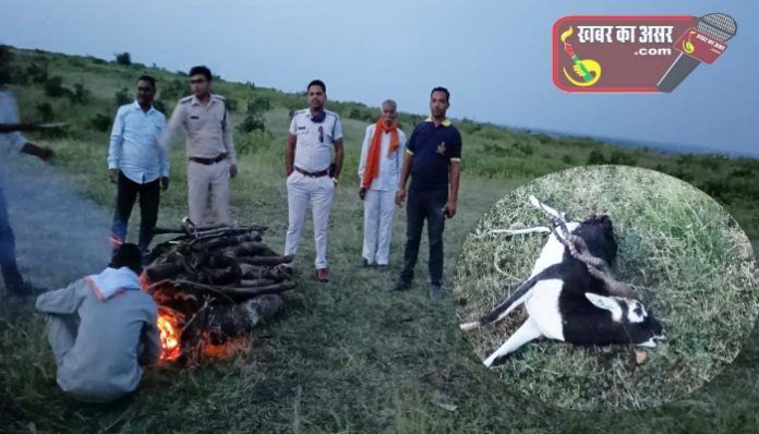 पड़रिया गाँव के बैवस नदी किनारे खेत में मिला काले हिरण का शव