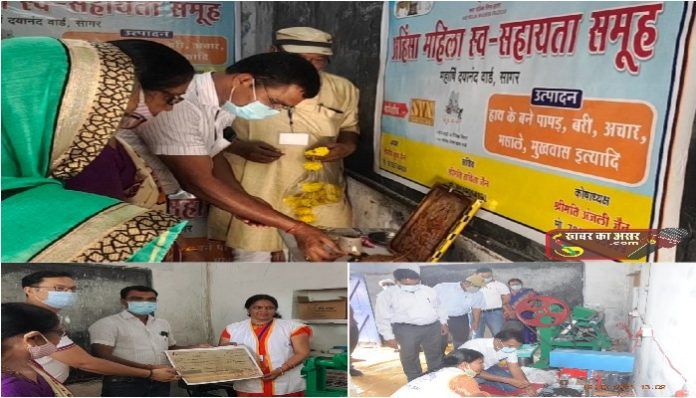 निगमायुक्त ने किया फूड प्रोसेसिंग का शुभारंभ:ः- नगर निगम आयुक्त आर पी अहिरवार ने आत्मनिर्भर म.प्र. अभियान के अंतर्गत अंहिसा महिला स्व सहायता समूह द्वारा खाद्य सामग्री निर्माण कार्य का प्रांरभ किया गया है जिसमें घरों में दैनिक भोजन में उपयोग में आने वाली खाद्य सामग्री है जिसे महिलाओं द्वारा स्वयं तैयार कर विक्रय किया जायेगा। जिनकी निगमायुक्त ने प्रषंसा करते हुये समूह को बैंक से आर्थिक सहायता उपलब्ध कराने हेतु सहायता करने का दिया।