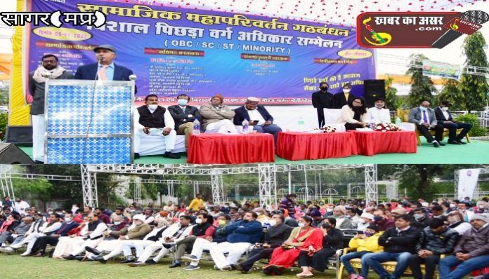 सागर/ मध्य प्रदेश पिछड़ा वर्ग मोर्चा (ओबीसी एससी एसटी माइनॉरिटी) का एक दिवसीय सम्मेलन मकरोनिया में आयोजित किया गया , कार्यक्रम के मुख्य अतिथि पूर्व न्यायाधीश वीरेंद्र सिंह यादव इलाहाबाद हाई कोर्ट विशिष्ट अतिथि प्रोफेसर अवधेश कुमार साह एवं सीमा समृध्दि कुशवाहा अधिवक्ता सुप्रीम कोर्ट व राजीव रंजन राजेश अधिवक्ता उच्चतम न्यायालय एवं जगदीश यादव जी अध्यक्ष पिछड़ा वर्ग आयोग दिल्ली सरकार एवं न्यायमूर्ति श्री नकवी से उपस्थित रहे।कार्यक्रम की अध्यक्षता दादा बहादुर सिंह लोधी ने की।