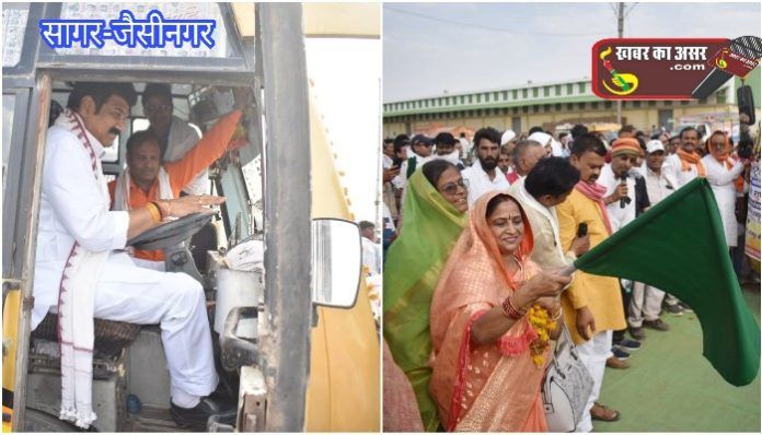 सागर के जैसीनगर से बरमान के लिए सीधी बस सेवा शुरू परिवहन मंत्री ने चलाई बस पत्नी ने दिखाई हरि झड़ी