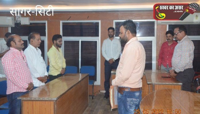 सागर/न.नि./दिनांक 25.05.2022/केषवगंज वार्ड में प्रभारी सफाई दरोगा के पद पर कार्यरत कमल नरयावरे के आकस्मिक निधन हो जाने पर नगर निगम सभाकक्ष में शोकसभा आयोजित की गई। जिसमें सहायक आयुक्त राजेष सिंह, संयुक्त कर्मचारी कल्याण मोर्चा से माधवप्रसाद कटारे, एन.यू.एल.एम.सिटी मैनेजर विक्रम जैन, देवकुमार चौबे, शषांक जैन, कैलाष दुबे सहित अधिकारियों/कर्मचारियों और सफाई कामगार युनियन के अध्यक्ष सुदेष सनकत, राजेन्द्र सनकत सहित अन्य पदाधिकारियों द्वारा दिवंगत आत्मा की शांति हेतु दो मिनिट का मौन धारण कर ईष्वर से उनके परिवार को इस गहन दुख सहन करने की शक्ति प्रदान करने की प्रार्थना की।
