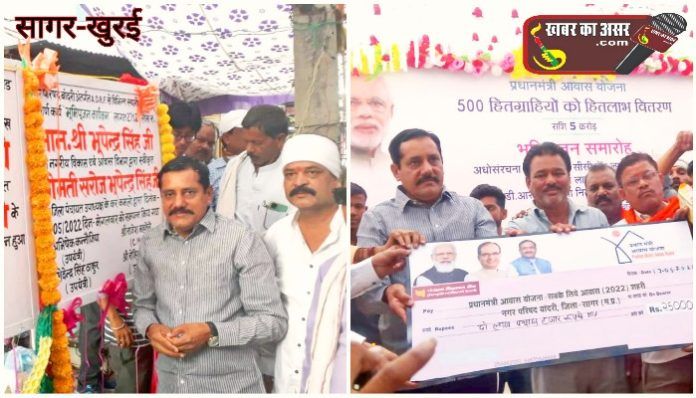 सागर बांदरी। खुरई विधानसभा क्षेत्र ऐसा भाग्यशाली विधानसभा क्षेत्र है जहां सर्वाधिक प्रधानमंत्री आवास स्वीकृत हुए हैं और यह सब आप लोगों के उस निर्णय का प्रतिफल है जिस निर्णय से आपने भूपेन्द्र भैया को चुनकर मंत्री बनाया था। उस अच्छे निर्णय के कारण आज पूरे खुरई विधानसभा क्षेत्र का नक्शा बदल गया और यहां के विकास की चर्चा पूरे प्रदेश में हो रही है। यह बात मंगलवार को बांदरी में आयोजित प्रधानमंत्री आवास योजनांतर्गत हितग्राही हितलाभ वितरण कार्यक्रम में मंत्री प्रतिनिधि लखन सिंह ने कही।