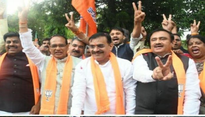 भोपाल। मध्यप्रदेश में पंचायत चुनावों में भाजपा की एकतरफा सफलता पर प्रदेश भाजपा कार्यालय में जश्न का माहौल रहा। मुख्यमंत्री शिवराजसिंह चौहान, प्रदेश भाजपा अध्यक्ष वीडी शर्मा, मंत्री भूपेंद्र सिंह सहित अनेक वरिष्ठ नेताओं ने कार्यालय में पहुंच कर कार्यकर्ताओं के साथ हर्षोल्लास व्यक्त किया।