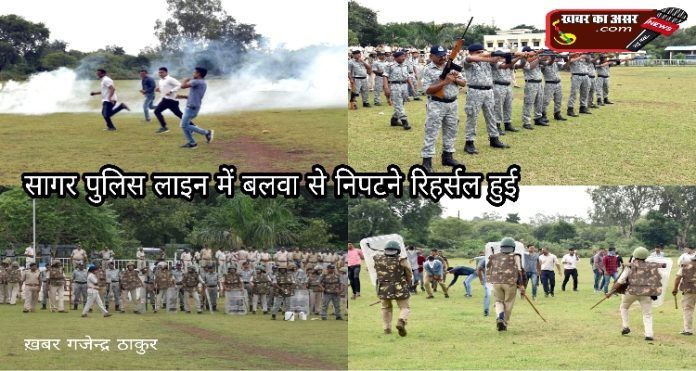 पुलिस लाइन सागर ग्राउंड में की गई बलवा ड्रिल रिहर्सल वरिष्ठ अधिकारियों ने दिए आवश्यक दिशा निर्देश