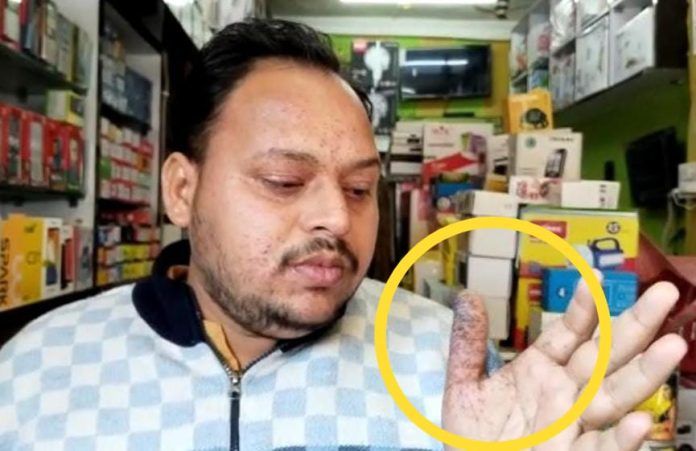 बीना। खिमलासा पुलिस की लापहरवाही के चलते लोगों का पुलिस प्रशासन से विस्वास हटता नजर आ रहा है। बीती रात साढ़े नौ बजे मालथौन रोड़ स्थित जैन मोबाइल सेंटर संचालक सुमित जैन निवासी खिमलासा की दुकान पर एक फोर व्हीलर कार से दो लोग दुकान पर टार्च खरीदने पहुंचे। दुकानदार से कहने लगे की मेरी गाड़ी की लाइट खराब हो गई है। दुकानदार सुमित जैन ने टार्च का पैसा मांगने पर नकाबपोश एक युवक ने देशी कट्टे से गोली मार दी। नकाबपोश युवक सुमित जैन के सिर में गोली मारना चाहता था लेकिन सुमित जैन ने स्वयं के चहरे पर हाथ लगा लिया जिसके चलते गोली सुमित के हाथ पर लगी एवं कुछ निशान सुमित के चहरे पर आये दोनों युवक फोर व्हीलर कार से तत्काल भाग गये। दो जगह सीसीटीवी कैमरे में गाड़ी कैद हुई है। कार खुरई रोड़ से आई थी घटना को अंजाम देकर भानगढ़ मुंगावली की तरफ़ चली गई है। परिजनों ने तत्काल पुलिस को सूचना देते हुए निजी वाहन से खुरई सरकारी अस्पताल में घायल को भर्ती कराया। जहाँ सुमित का इलाज किया जा रहा हैं।