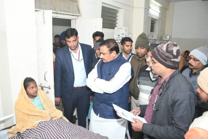 मंत्री भूपेंद्र सिंह खुरई पहुंच कर फुड प्वाइजनिंग से प्रभावित बच्चों से मिले