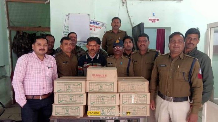 सागर।  पुलिस ने बताया कि- दिनांक 20.01.2023 को श्रीमान पुलिस अधीक्षक महोदय सागर के मार्गदर्शन मे मादक पदार्थ व अवैध शराब के विरूद्ध चलाई जा रही मुहिम मे श्रीमान् अतिरिक्त पुलिस अधीक्षक महोदय के निर्देशन मे तथा श्रीमान नगर पुलिस अधीक्षक महोदय सागर व थाना प्रभारी मानस द्विवेदी के नेतृत्व में आज दिनांक 20.01.2023 को जरिये मुखविर के द्वारा सूचना प्राप्त हुई कि ग्राम बम्होरी रेगुवा मे एमपीसीए ग्राउण्ड के पास रामबाबू सेन अपने घर मे भारी मात्रा में शराब रखे हुये है