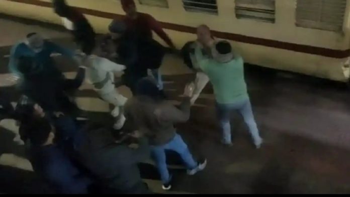 रेलवे स्टेशन पर मारपीट का वीडियो सोशल मीडिया पर वायरल हुआ। जिसमें तीन पुलिसकर्मियों के साथ मारपीट की गई है। घटना रेलवे स्टेशन के प्लेटफार्म नंबर दो की है। फिलहाल, इस पूरे मामले को लेकर मारपीट करने वालों के खिलाफ पुलिस मामले की जांच में जुटी हुई है।
