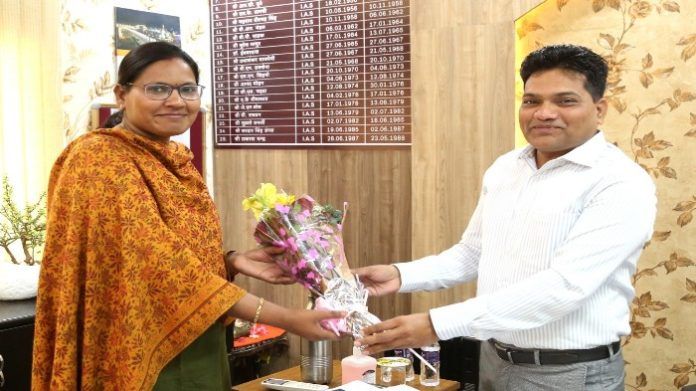 कलेक्टर दीपक आर्य ने श्रीमती सपना त्रिपाठी को शुभकामनाएं दी।