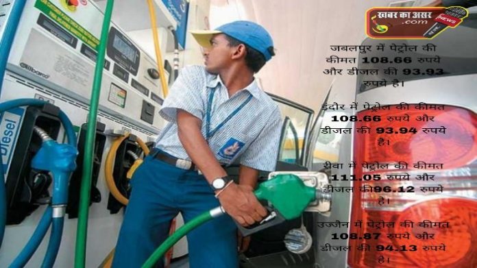 जबलपुर में पेट्रोल की कीमत 108.66 रुपये और डीजल की 93.93 रुपये है।