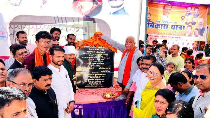 सागर। शासन के निर्देशानुसार मध्यप्रदेश के प्रत्येक शहर व गाँव भर में घर-घर जा कर प्रत्येक पात्र व्यक्ति को शासन की जनकल्याणकारी योजनाओं का लाभ दिलाने एवं अनवरत जारी विकास से अवगत कराने के उद्देश्य से निकाली जा रही विकास यात्रा के क्रम में सागर शहर की विकास यात्रा छठवें दिन तीन वार्डों संत कबीर वार्ड, केशवगंज वार्ड एवं विवेकानंद वार्ड की यात्रा संत कबीर वार्ड में कुल 34.75 लाख की लागत से बनाएं जाने वाले मंगल भवन के भूमिपूजन के साथ प्रारम्भ हुई। माननीय विधायक शैलेंद्र जैन ने निगम अध्यक्ष वृंदावन अहिरवार, नगर निगम आयुक्त चंद्र शेखर शुक्ला, महापौर प्रतिनिधि सुशील तिवारी, जिला अध्यक्ष गौरव सिरोठिया, वार्ड पार्षदों, अन्य जनप्रतिनिधि एवं कार्यकर्ताओं सहित गणमान्य नागरिकों की उपस्थिति में मंगल भवन का भूमिपूजन कर यात्रा का शुभारम्भ किया। छठवें दिन की विकास यात्रा संतकबीर वार्ड मंगल भवन के भूमिपूजन पश्चात हनुमान मंदिर से होते हुए रोहण मार्ग से केशवगंज वार्ड में विभिन्न स्थलों से होते विवेकानंद वार्ड के ग्यादीन तिगड्डा पर बनने वाले मंगल भवन के भूमि पूजन एवं कन्यापूजन के साथ सम्पन्न हुई।