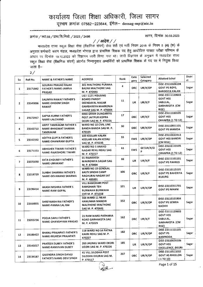 प्रशासनमध्य प्रदेशसागर / बुंदेलखंड प्राथमिक माध्यमिक शिक्षकों की नई पदस्थापना नियुक्ति आदेश जारी By खबर का असर .कॉम - March 31, 2023 0 Copy URLFlipKakao StoryGettr प्राथमिक माध्यमिक शिक्षकों की नई पदस्थापना नियुक्ति आदेश जारी सागर। प्राथमिक शिक्षक पर जिले में 214 एवं माध्यमिक शिक्षक पद पर सागर संभाग अंतर्गत 632 पदो पर नियुक्ति प्रदान की गई। जिला शिक्षा अधिकारी अखिलेश पाठक ने बताया कि