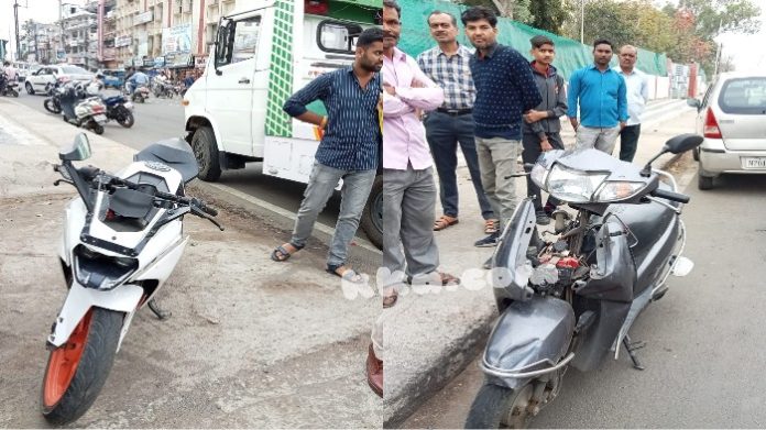 प्रत्यदर्शियों ने बताया स्पोर्ट बाइक की रफ़्तार इतनी तेज थी कि एक्टिवा के परखच्चे उड़ गए और एक्टिवा पर बैठे युवक को चोटें आ गयी, इसी बीच स्पोर्ट बाइक चालक को भी चोटे आई हैं।