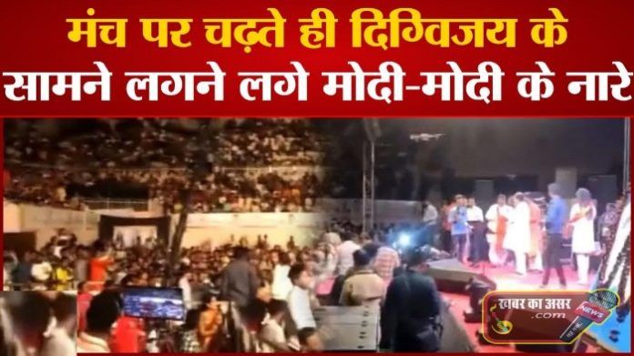 Indore: जब मंच पर पहुँचे दिग्विजय सिंह और लगने लगे मोदी के नारे- video