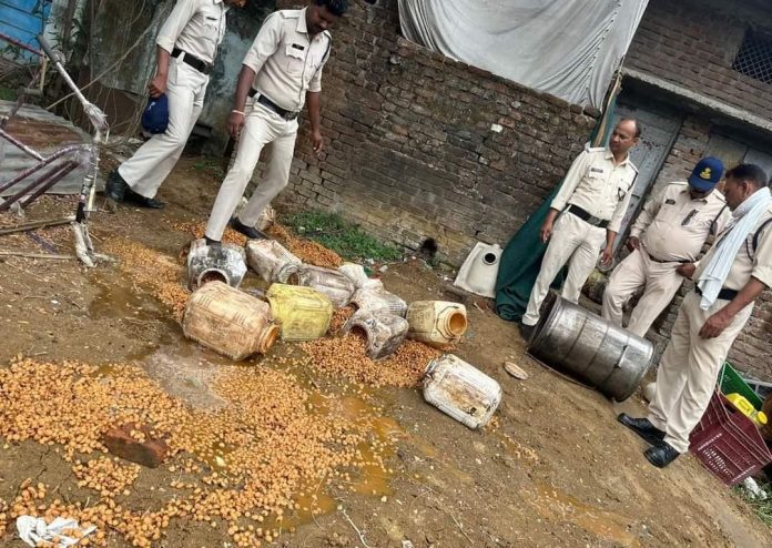 नरसिंहपुर : कलेक्टर ऋजु बाफना जिला नरसिंगपुर के निर्देशानुसार आबकारी विभाग द्वारा जिले में अवैध मदिरा के संग्रहण, परिवहन व विक्रय के विरूद्ध अभियान चलाया जा रहा है। इस अभियान के तहत शनिवार 24 जून को मुखबीर द्वारा प्राप्त सूचना के आधार पर वृत्त नरसिंहपुर के हजरतगंज व शांतिनगर मोहल्ला एवं ग्राम नयाखेड़ा में दबिश देकर 750 किलोग्राम महुआ लाहन (शराब बनाने का कच्चा माल), 82 लीटर हाथ भट्टी, 23 पाव देशी मदिरा प्लेन, 20 पाव देशी मसाला मदिरा, 650 एमएल की 11 बॉटल बियर, 500 एमएल की 7 केन पावर 10000 बियर एवं 13 पाव गोवा रम जब्त की गई। अभियान के दौरान अवैध मदिरा से संबंधित 6 आपराधिक प्रकरण दर्ज किये गये। ये प्रकरण मध्यप्रदेश आबकारी अधिनियम 1915 के प्रावधानों के तहत दर्ज किये गये। महुआ लाहन का सैम्पल लेकर मौके पर नष्ट किया गया। कार्रवाई के दौरान मैके पर दो आरोपियों को गिरफ्तार कर जमानत- मुचलके पर रिहा किया गया।
