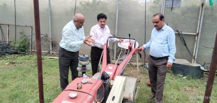 सागर : संभागायुक्त डॉ. रावत ने आज कृषि विज्ञान केंद्र का भ्रमण कर वहा के प्रमुख वैज्ञानिक एवं हेड डा. के.एस. यादव के साथ बैठक में लिए गए निर्णय अनुसार कृषि तकनीकी के विभिन्न बिंदुओं जैसे सोयाबीन, उर्द, अरहर मक्का, तिल, मूंगफली आदि की उन्नत किस्मों,बीजोपचार एवं खरपतवार, नैनो यूरिया एवं नैनो डी ए पी का अनुप्रयोग, बुआई की उन्नत तकनीकी रिज फरो एवं रैज बेड पद्धति, प्राकृतिक खेती के विविध अवयव जैसे जीवामृत, बीजामृत, घनामृत बनाने की तकनीकी, मोटा अनाज, अरहर में 120 दिन में आने वाली किस्म पूसा 16 एवं धान में पूसा बासमती आदि के बारे में विस्तार से चर्चा की।