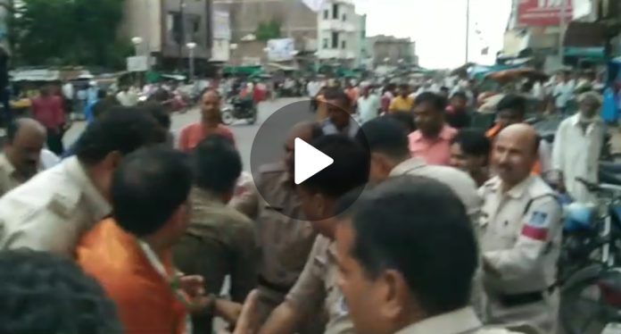 मुख्यमंत्री शिवराज सिंह के पुतला दहन के दौरान गढ़ाकोटा में कांग्रेसियों की पुलिस से झूमाझटकी