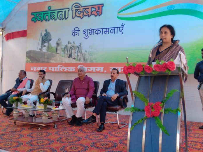 स्वतंत्रता दिवस पर महापौर श्रीमती संगीता सुशील तिवारी ने निगम अध्यक्ष एवं निगमायुक्त की उपस्थिति में ध्वजारोहण किया