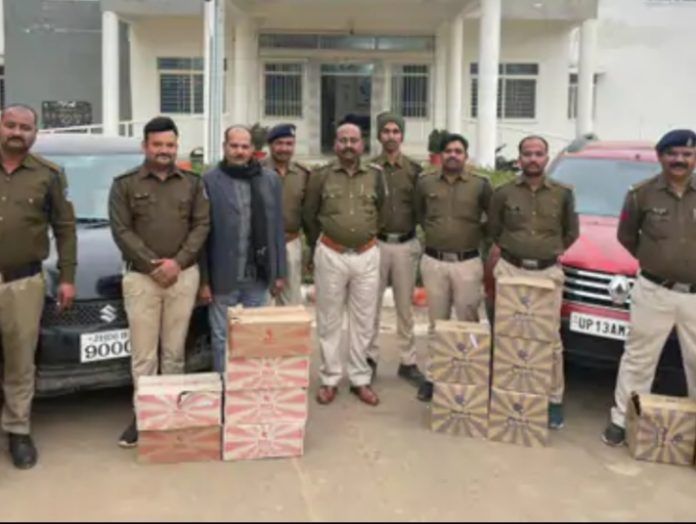 जानकारी के अनुसार बसई थाना प्रभारी रामसेवक शर्मा ने बताया कि पुलिस अधीक्षक प्रदीप शर्मा ने 31 दिसंबर को साल का आखिरी दिन होने पर शराबियों पर नकेल कसने के लिए अभियान चलाने के निर्देश दिए थे। एसपी के निर्देश पर बसई पुलिस ने फोर्स के साथ बसई रट्ठा गेट चौकी के पास चैकिंग लगाई। रात सवा 11 बजे एक डस्टर कार क्रमांक यूपी 13 एएम 7343 आती दिखाई दी। जिसे रोककर चेक किया गया। कार के अंदर अंग्रेजी शराब बीयर की आठ पेटी रखीं मिलीं। 96 बोतलों में कुल 62.4 लीटर बियर शराब भरी हुई पाई गई। नाम व पता पूछने पर ड्राइवर की पहचान रिंकू पुत्र अजब सिंह लोधी निवासी ग्राम गरेंठा के रूप में हुई। जबकि उसका एक और साथी अंधेरे का फायदा उठाकर भाग निकला।