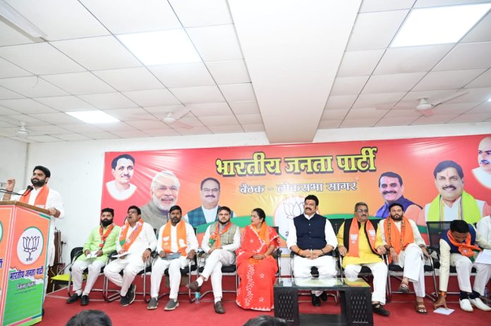 सागर। लोकसभा चुनाव की तैयारी को लेकर धर्मश्री स्थित संभागीय भाजपा कार्यालय में भारतीय जनता युवा मोर्चा की बैठक का आयोजन किया गया। बैठक में मुख्य अतिथि के तौर पर कैबिनेट मंत्री गोविंद सिंह राजपूत मौजूद रहे। बैठक की अध्यक्षता भाजपा जिला अध्यक्ष गौरव सिरोठिया ने की। इस दौरान भारतीय जनता युवा मोर्चा जिला अध्यक्ष यश अग्रवाल भी मौजूद रहे। इस दौरान भाजपा सांसद प्रत्याशी लता वानखेड़े भी उपस्थित रहीं।