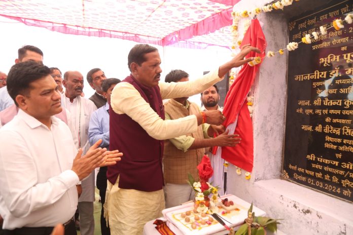 सागर। जिले की बंडा तहसील के ग्राम सौरई में मेसर्स मध्यभारत एग्रो. प्रोडक्ट्रस लिमिटेड यूनिट – 2 का भूमिपूजन मुख्यमंत्री डा. मोहन यादव की अध्यक्षता में वर्चुअल कॉन्फ्रेंस के माध्यम से किया गया। सौंरई में आयोजित हुए कार्यक्रम में बंडा विधायक श्री वीरेन्द्र सिंह लोधी, कलेक्टर श्री दीपक आर्य, पुलिस अधीक्षक श्री अभिषेक तिवारी सहित जनप्रतिनिधि, अधिकारी, गणमान्य नागरिक तथा मेसर्स मध्यभारत एग्रो. प्रोडक्ट्रस लिमिटेड के अधिकारी कर्मचारियों ने वीडियो कॉन्फ्रेंसिंग के माध्यम से उज्जैन में आयोजित हुए मुख्य कार्यक्रम का लाइव प्रसारण देखा।